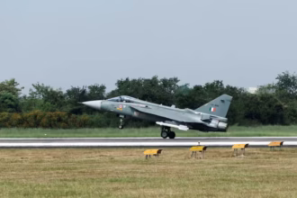 Hindustan Aeronautics Limited (HAL) Tejas Mark 1A, a light combat aircraft takes off ahead of its maiden flight…