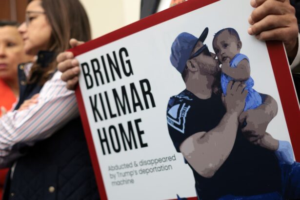 U.S. Reps. Nydia Velazquez, D-N.Y., at left, and Juan Vargas, D-Calif., hold pictures of Kilmar Abrego Garcia during a news conference to discuss Abrego Garcia’s arrest and deportation, at the…
