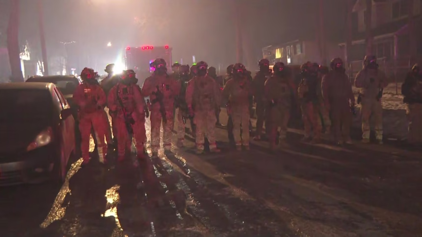 Minneapolis Mayor Jacob Frey and Police Chief Brian O’Hara held a joint news conference late Wednesday night in which Frey called for peace. O’Hara said his officers were also being hit by rocks, fireworks, ice and snowballs. The chief said protesters crossed the line, and mutual aid from the Minnesota State Patrol and the Hennepin County Sheriff’s Office was called in.