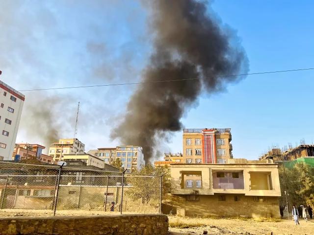Smoke rises up from the site of explosions in Kabul on October 15, 2025, amid heavy border clashes between Afghanistan and Pakistan. Two explosions were heard in central Kabul on the evening of October 15, AFP journalists said, with Afghanistan on edge after border clashes with Pakistan over the past week. Photo: AFP