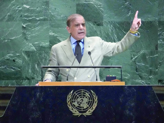PM Shehbaz, who spoke for the third time to the 193-member world body, began his remarks highlighting the world’s complexities like intensifying conflicts, violation of international laws, humanitarian crises, disinformation, arms race, emerging technologies and climate change.