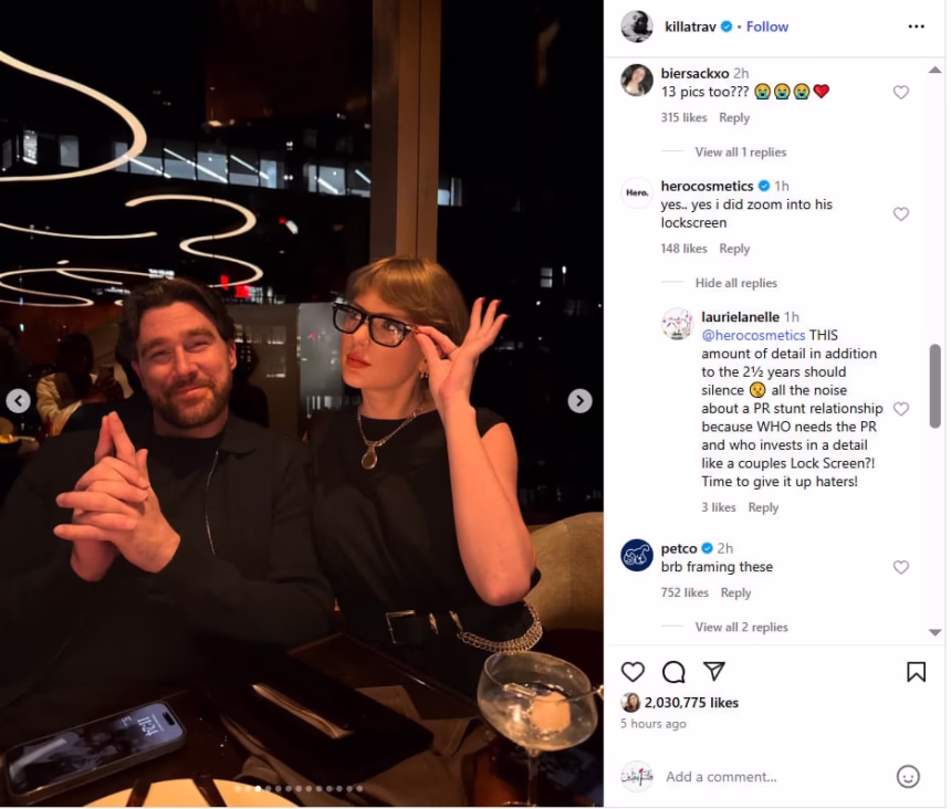 “Yes.. yes i did zoom into his lockscreen,” one fan wrote referring to the third photo in the collection in which the Cruel Summer hitmaker and the NFL star were posing while sitting in a restaurant.