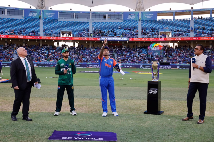 Indian captain Suryakumar Yadav tosses the coin as Pakistan skipper Agha Salman looks on ahead of the highly anticipated Asia Cup 2025 clash between India and Pakistan at the Dubai International Stadium. Photo: PCB
