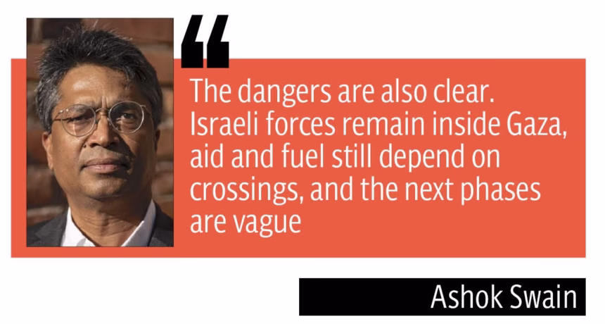 While the new ceasefire and phased pullback are being framed as a diplomatic breakthrough, Dr Ashok Swain, professor of peace and conflict research at Sweden’s Uppsala University , cautions that the deal could allow Prime Minister Netanyahu to evade accountability for the atrocities he has committed in Gaza.